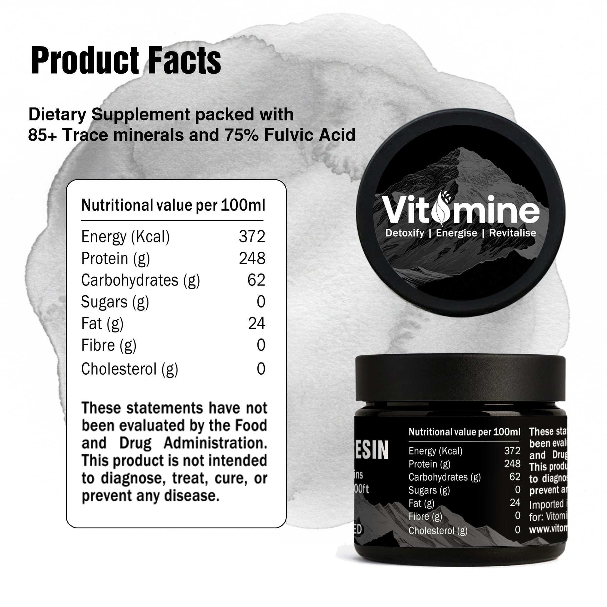 This is our own high-altitude Shilajit resin — not a white-label or reseller product. Each batch is harvested above 16,000 ft in the Himalayas and processed in-house to preserve fulvic compounds and trace minerals while ensuring clean, solvent-free extraction and consistent solubility.